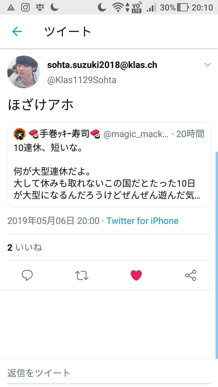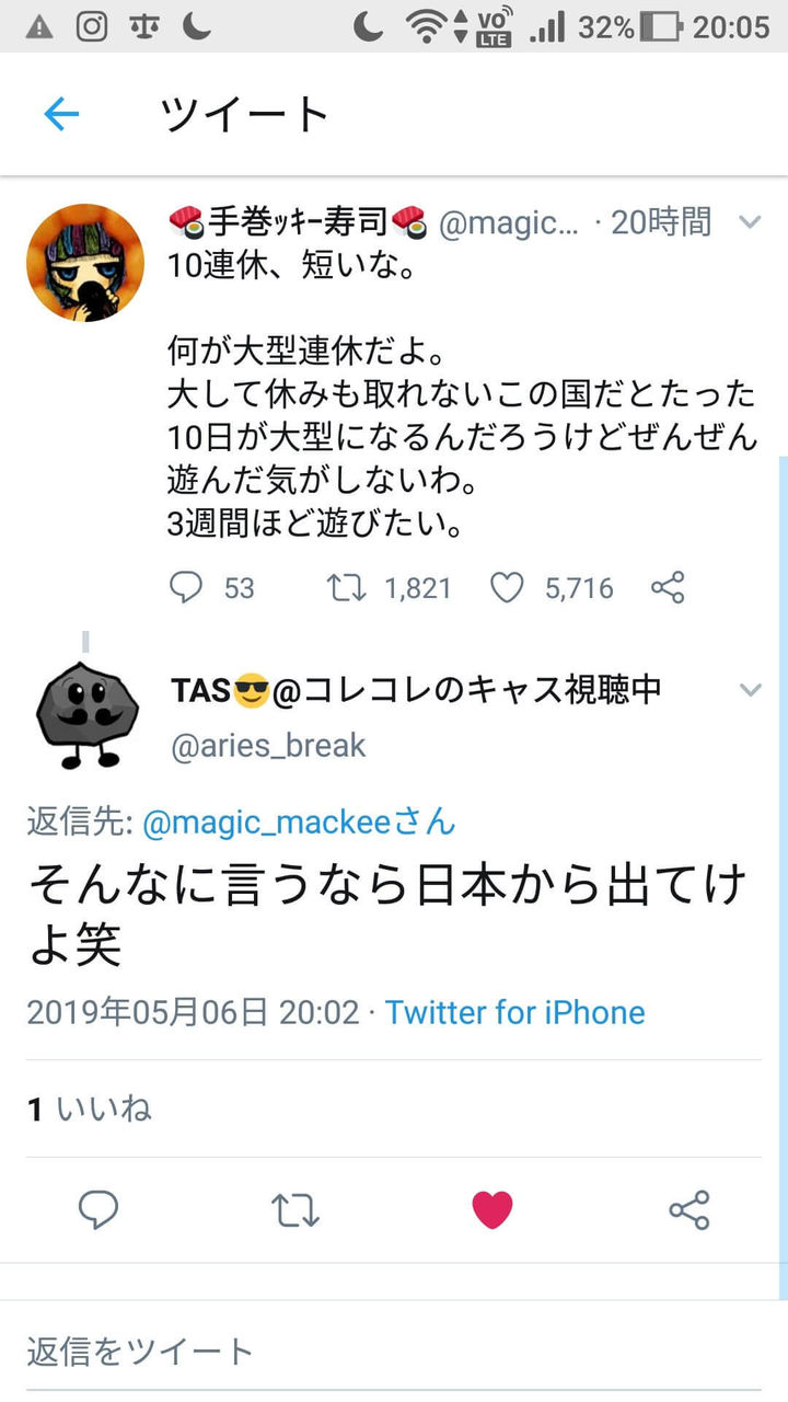 — 🍣手巻ッキー寿司🍣 (@magic_mackee) 2019年5月6日