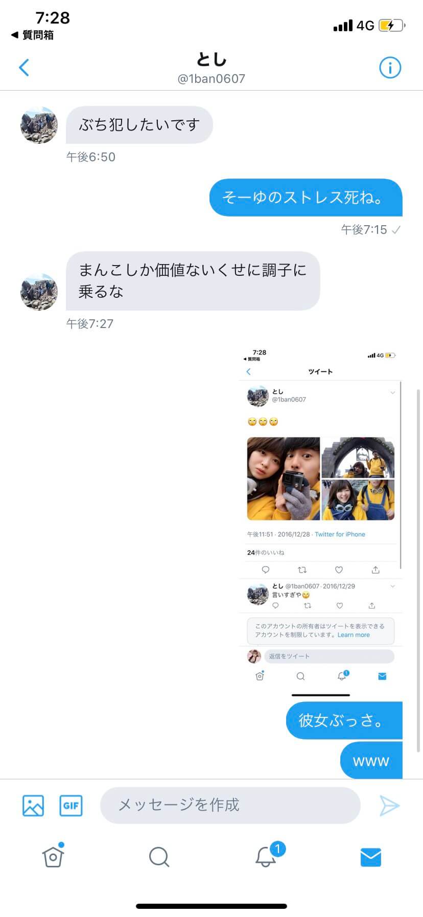 (@1ban0607)← 森俊博 明法高等学校/東京理科大 出身の彼は風俗嬢に無償DMした挙句 相手にされないとわかると「(女性器)しか価値ないくせに調子に乗るな」と言っちゃうおバカ性欲猿です^_^ pic.twitter.com/OBfFZGvVhx