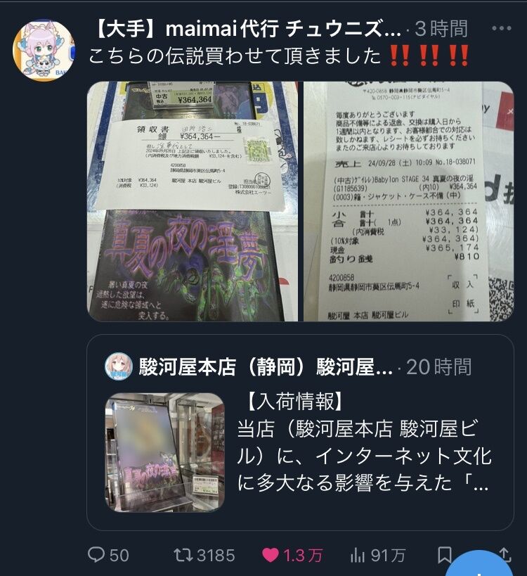 36万する伝説のビデオ「真夏の夜の淫夢」、入荷から17時間で売れる 2024年10月01日 カテゴリ:真夏の夜の淫夢 1: 大物Youtuber速報 2024/09/28(土) 14:23:35.14 ID:6dbIEPoA0 すごすぎだろ 👌👽👌 続きを読む 👌👽👌 タグ :#真夏の夜の淫夢
