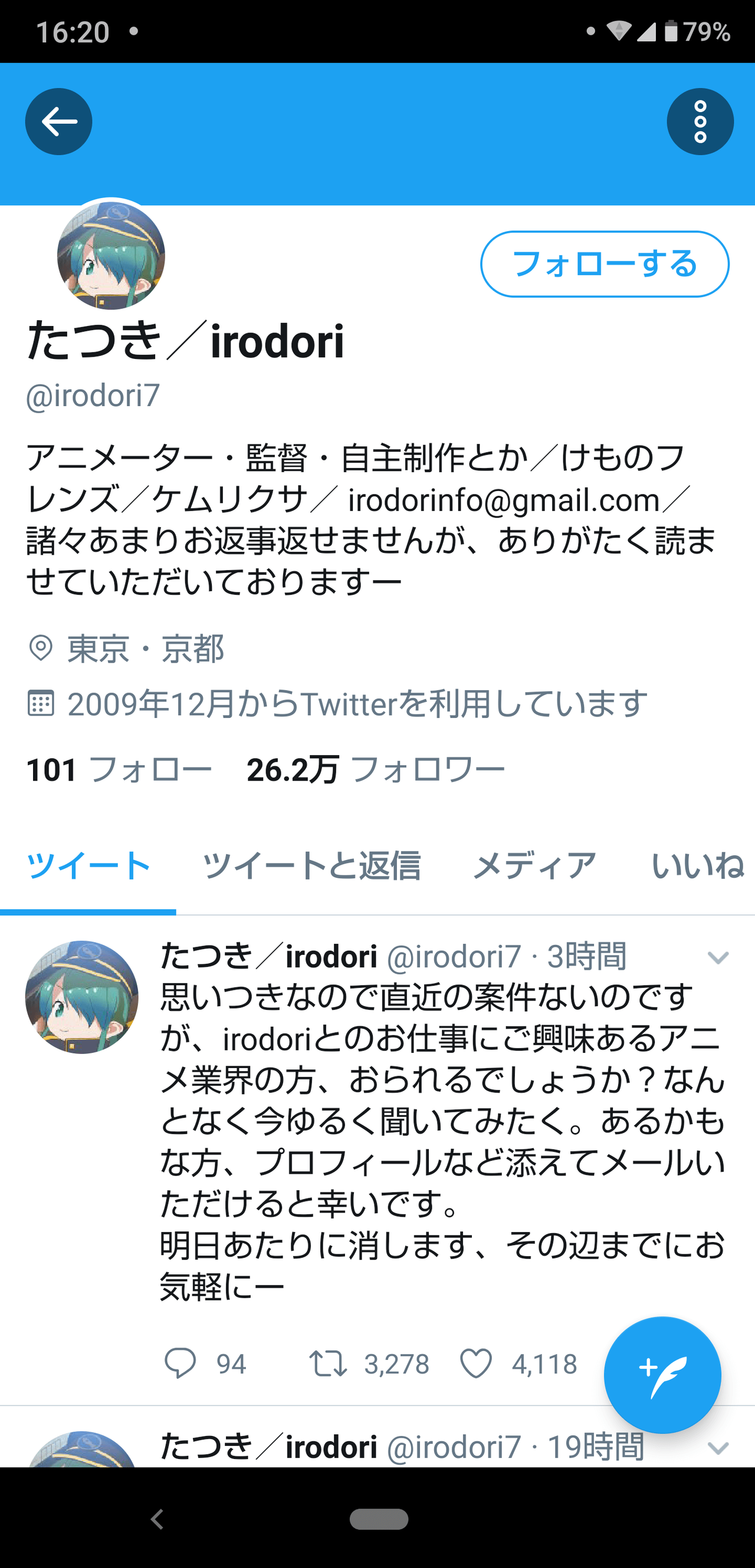 【悲報】けもフレたつき監督、仕事が無くて募集するが人に頼み事をしている態度ではないと炎上 2019年09月29日 カテゴリ:アニメ 1: 大物Youtuber速報 2019/09/27(金) 16:50:18.10 ID:l82n7ZPr0 思いつきなので直近の案件ないのですが、irodoriとのお仕事にご興味あるアニメ業界の方、おられるでしょうか? なんとなく今ゆるく聞いてみたく。あるかもな方、プロフィールなど添えてメールいただけると幸いです。 明日あたりに消します、その辺までにお気軽にー 👌👽👌 続きを読む 👌👽👌 タグ :#たつき#ムクムクムクッ#けものフレンズ#けもフレ