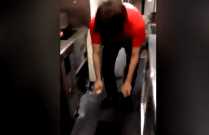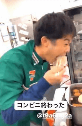 従業員がドリンクサーバーにストローを差し、直接飲み物を飲んでいる動画